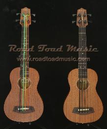 | The Kala U-Bass is a joint venture between Kala Brand Music and Road Toad Music and started with a production version of the Big Bufo Baritone size Ukulele Bass . It is currently available in 3 baritone bodied models in both fretted and fretless as well as new for 2011 USA built solid bodies. Import solid bodies will be available in second half 2011. All feature the Shadow pickup and Road Toad Pahoehoe Bass Strings. |